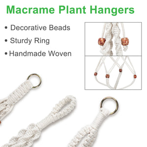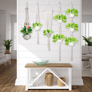 WHAT YOU GET -- 5 pcs beige cotton hangers, 5 pcs hooks, perfect gift for gardening lovers. (POTS & PLANTS NOT INCLUDED)