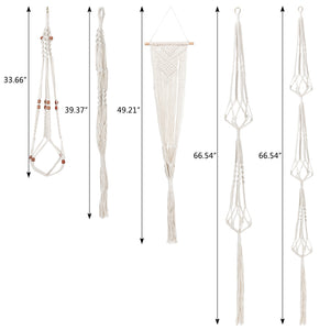 1. SAVE SPACE -- These 5 different stylish macrame hanging plants planter makes a wonderful gift for housewarmings, weddings, and all occasions.You save on shelf space and can beautify any indoor / outdoor corner spaces